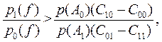 причём весовой множитель l0 зависит от априорных вероятностей наличия и отсутствия сигнала и соотношения цен (плат) за правильные и ошибочные решения.