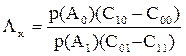 R = C11 P(A1*A1) + C01 P(A0*A1) + C10 P(A1*A0) + C00 P(A0*A0).
