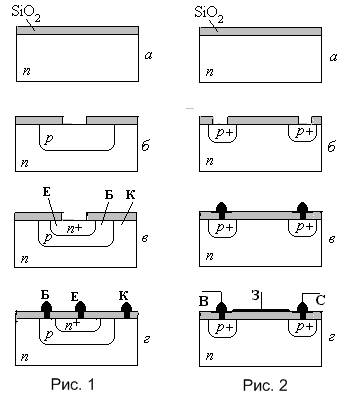 Рис.1. Послідовність операцій планарної технології виготовлення біполярного транзистора.