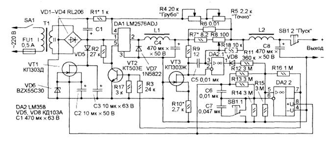 Импульсный стабилизатор напряжения на микросхеме LM 2576 ADJ (рис.10)