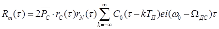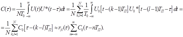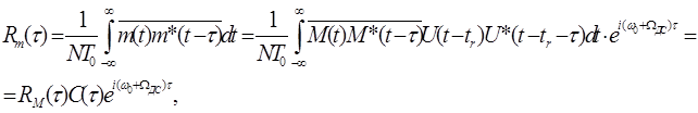 Корреляционная функция принятого сигнала представляется как результат двухэтапного усреднения - статистического усреднения случайной временной структуры (обозначается чертой сверху) и усреднения регулярной временной структуры: