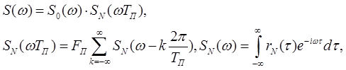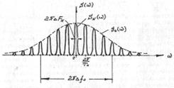 Энергетический спектр закона модуляции последовательности одиночных сигналов может быть представлен произведением энергетического спектра закона модуляции одиночного сигнала S0 (ω) так называемого междупериодного энергетического спектра SN (ωТп ), который является результатом размножения по частоте с интервалом, равным частоте повторения Fп = 1/Тп , энергетического спектра огибающей последовательности SN (ω) (рис. 2.3.3):