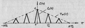 может быть представлена произведением корреляционной функции огибающей последовательности rn (τ) и бесконечной последовательности корреляционных функций закона модуляции одиночных сигналов (рис. 2):