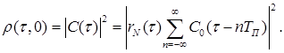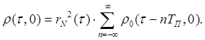 С учётом того, что время корреляции одиночного радиоимпульса много меньше периода повторения, выражение для ρ(τ, 0) принимает вид: