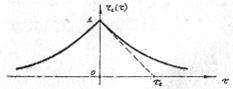 есть корреляционная функция комплексной огибающей принятого сигнала. Статистическое усреднение комплексной огибавшей M(t) , являющейся согласно физическим представлениям эргодическим случайным процессом (для которого усреднение по времени и по ансамблю реализаций эквивалентны), предполагает усреднение по множеству реализаций, продолжительность которых ограничена временем наблюдения объекта наблюдения (сигнала) в пределах одного элемента разрешения. Иными словами, статистическое усреднение предполагает усреднение по множеству реализаций. Корреляционная функция комплексной огибающей М(t) является характеристикой как амплитудных, так и фазовых его флуктуации. Она определяется экспериментально. Результаты многочисленных экспериментальных исследований свидетельствуют о возможноcти её аппроксимации удобной в практических приложениях экспоненциальной кривой (рис. 10):
