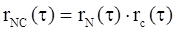 Она отличается от корреляционной функции излучаемой нефлуктуирующей ограниченной последовательности одиночных сигналов наличием дополнительного сомножителя r0 (τ) . Произведение rN (τ) * rc (τ) характеризует нормированную корреляционную функцию огибающей ограниченной по времени и флуктуирующей по амплитуде и фазе последовательности одиночных сигналов:
