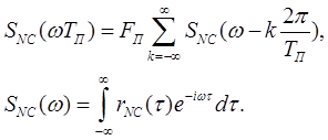 причем гребенчатый междупериодный энергетический спектр есть размноженный по частоте с интервалом, равным частоте повторения, энергетический спектр огибающей последовательности с учетом ограниченного времени наблюдения и флуктуации: