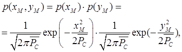 Поэтому совместное распределение вероятности квадратурных составляющих комплексной огибающей принятого сигнала определяется выражением