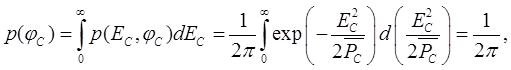 Учитывая, что амплитуда принятого сигнала может принимать любые положительные значения, находим одномерное распределение фазы принятого сигнала: