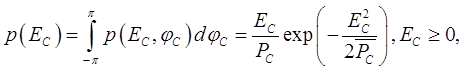 Учитывая, что фаза принятого сигнала может принимать любые значения от -π до π радиан, находим одномерное распределение вероятности амплитуды принятого сигнала