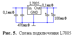 Данный блок представлен электротехническим устройством, осуществляющим преобразование входного переменного напряжения 220 В в постоянное напряжение 5 В, необходимое для питания входящих в состав системы микросхем.
