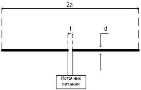 Электрическим вибратором называют излучатель электромагнитных волн в виде тонкого проводника длины 2a и диаметра d, возбуждаемого в точках разрыва генераторов ВЧ. Вибраторы широко применяются как в качестве самостоятельных антенн, так ив виде элементов сложных антенных систем.