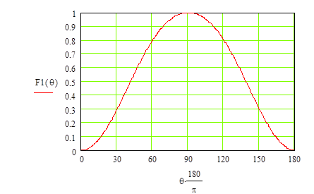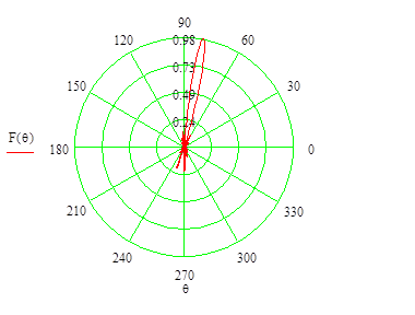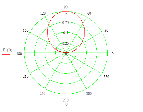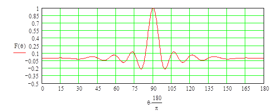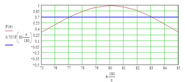 - Ширина диаграммы направленности на уровне 0,5 по мощности: ![]()