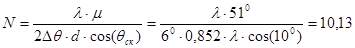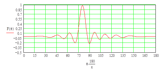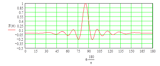 - Сектор сканирования (максимальное отклонение главного лепестка от нормали, проведенной к плоскости решетки): ![]()