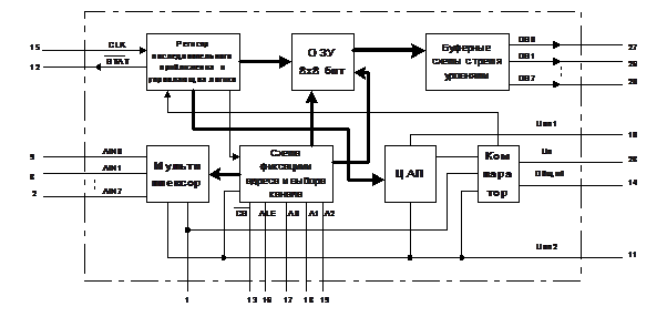 АЦП имеет входными параметрами каналов Uвхi в диапазоне от 0 до +2,5В, а на выходе – 8 бит.