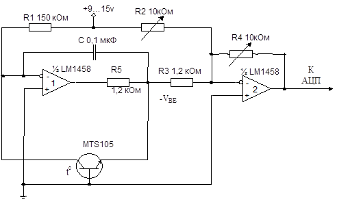 Поскольку в этом случае максимальное выходное напряжение составляет лишь 0.1 В , для дальнейшей обработки сигнала его нужно усилить еще примерно до 1 В. Такое 10-кратное усиление по напряжению с помощью стандартных операционных усилителей (741, LM358 и т.п.) не составляет проблемы, а поэтому согласование сигнала с измерительным прибором осуществляется легко. Для измерений с повышенной точностью следует дополнительно компенсировать температурную погрешность датчиков.