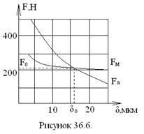 Таким образом для обеспечения стабильности величины зазора δ, должно быть обеспечено условие “всплывания” каретки над плоскостью статора т.е. δ>0, Fа >FM . Типичный характер зависимостей FM (δ) и Fa (δ) из образцов координатной системы для технологических установок микроэлектроники с ЛШД показан на рисунке 2.