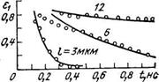 . При конечном времени передачи потери заряда обусловлены, во-первых, тем, что за t=tnepчасть заряда ε1 просто не успевает перетечь в соседнюю ячейку и, во-вторых, захватом части носителей ε2 поверхностными ловушками. Составляющая ε1 определяет потери передачи на высоких частотах, ε2—на низких и средних частотах работы.