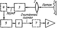 1 - запускающие импульсы; 2 - сдвигающие импульсы; 3 -выходной диод; 4 - генератор развертки; 5 - ключи выбора строк; 6 - выходной регистр; 7 - двухтактные сдвигающие импульсы; 8 - оптическая секция накопления зарядов