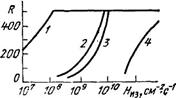 На рис.5 приведены расчетные кривые для U3 = 10 В, Nд=5·1014 см-3, U0=3,8 В, тепловая скорость υт=107 см/с, сечение захвата σv = 2,2-10-16 см2, плотность объемных центров Nоб=l,8·1014 см-3, плотность поверхностных центров Nпов=6·1010 см-2. При этих параметрах и при QP = 0 время накопления паразитного заряда, составляющего 1 % от QpM, равно 20 мс (для многоэлементных ПЗС, и в особенности для аналоговых устройств, большее накопление паразитного заряда недопустимо).