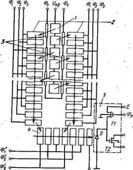 Рис.2. Схема трехтактного сдвигового регистра на ПЗС: