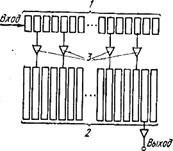Передающие камеры для малых уровней освещенности являются еще одной перспективной областью применения ПЗС. Основной проблемой, возникающей при малых уровнях освещенности, являются шумы, которые становятся сравнимыми с сигналом. Собственные шумы ПЗС, обусловленные флюктуациями фонового заряда и флюктуациями зарядовых потерь при передаче, позволяют достичь минимального уровня освещенности, соответствующего 60—100 электронам водном зарядовом пакете. При таком малом сигнале определяющую роль начинают играть шумы выходного усилителя. Эти шумы могут быть значительно снижены с помощью многократного неразрушающего считывания и последующего сложения выходных сигналов, в результате которого флюктуации усредняются и отношение сигнал/шум ks/Nувеличивается. Подобный принцип реализуется с помощью многоразрядного усилителя, так называемого «распределенного усилителя с плавающим затвором» (РУПЗ) (рис.20). К каждому биту последние Nвых разрядов выходного сдвигового регистра подключен усилитель зарядов с плавающим затвором.