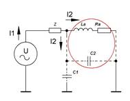 Амперметр представляет для этой цепи комплексное сопротивление, состоящее из активного сопротивления Rа и индуктивности La рабочей части прибора, емкости С2 между входными зажимами и емкостей С1 и С3 входных зажимов по отношению к корпусу. Поэтому включение амперметра приводит к изменению тока в цепи, размер и характер которого зависят от частоты тока. Кроме того, часть протекающего в цепи тока ответвляется через шунтирующие емкости С1 , С2 и С3 . Следовательно, ток I1 в цепи источника, ток I2 , измеряемый прибором, и ток I3 , протекающий через нагрузку Z, будут различны (для схемы на рисунке - I1 > I2 > I3 ). Поскольку соотношения между этими токами зависят от частоты, то возникает дополнительная частотная погрешность, возрастающая с повышением частоты. Даже в лучших приборах при частотах выше 100 МГц погрешность становится недопустимо большой.