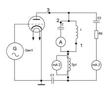 Эквивалентные схемы высокочастотной цепи при двух возможных вариантах включения в нее амперметра (миллиамперметра) показаны на рисунке 1.