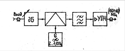 Анализатор спектра С4-27 представляет собой супергетеродинный приемник с тройным преобразованием частоты и электронной перестройкой в пределах установленной полосы обзора . Он состоит из двух блоков СВЧ - СВЧ преобразователь и анализатор спектра на промежуточной частоте 160 МГц. Упрощенная структурная схема преобразователя СВЧ представлена на рисунке 10.