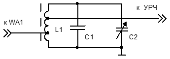При работе с настроенной антенной часто используется трансформаторная или автотрансформаторная связь контура с антенной и УРЧ. Выберем автотрансформаторную связь, т.к. при этом требуется меньшее число намоточных элементов. Схема входной цепи изображена на рис. 3.