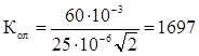 К1 – коэффициент связи, обычно равен 0,7…0,9. Выберем К1 = 0,8.