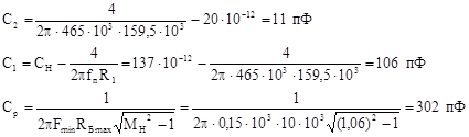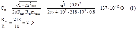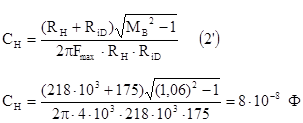 Из значений СН , найденных по формулам (1’) и (2’)выбираем наименьшую, т.е. СН = 137 пФ.