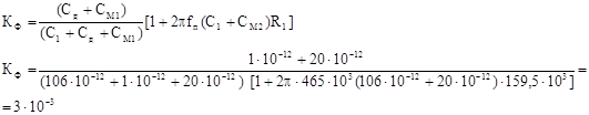 Кз = 2…3 – коэффициент запаса усиления, учитывающий старение электронных приборов, расстройку контуров и уменьшения напряжений питания в процессе эксплуатации. Выберем Кз = 2.
