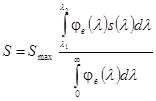 Інтегральною чутливістю S приймача називається відношення реакції приймача t до потоку випромінювання Фе складного спектрального складу, що викликав цю реакцію: