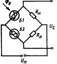 Звичайно болометри включають по мостовій схемі (рис. 2), що дозволяє усунути вплив зміни температури навколишнього середовища. Болометр