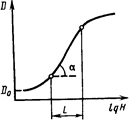 Характеристична крива фотоматеріалу зображена на рис. 8, де D- оптична щільність почорніння матеріалу, Н- світлова експозиція.