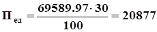 | Плановая прибыль на единицу продукции | Пед | 20,9 | Формула 7.17 |