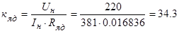 Кп = Uн / Uун = 220 / 6.25 = 35,2