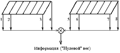 Пронумерованными стрелками показано направление потока информации от датчиков. Общее число датчиков выбрано - 8.