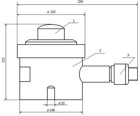 Здесь 1 - это концентрическая упругая поверхность, чья деформация преобразуется с помощью тензорезисторов в электрический сигнал; 2 - корпус первичного преобразователя, служащий для защиты устройства от попадания внутрь твердых веществ и воды; 3 - трубка, защищающая соединительные провода.