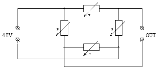 При оказывании давления на концентрическую поверхность (1), она деформируется. На эту поверхность с внутренней стороны нанесены тензорезисторы. Причем тензорезисторы включены по схеме моста (рис. 2.1.2). К тензорезисторам подводится напряжение