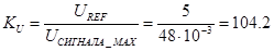 Коэффициент усиления должен быть таким, чтобы максимальный уровень полезного сигнала усиливался до опорного напряжения АЦП, что соответствовало бы максимальному коду. Опорное напряжение выбираем стандартное