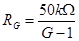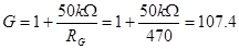 В инструментальных усилителях коэффициент усиления задается с помощью подключения внешнего сопротивления RG , значение которого высчитывается для INA128 по следующей формуле