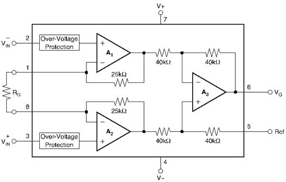 Тогда выбираем т.н. инструментальный операционный усилитель фирмы BURR BROWN INA128.