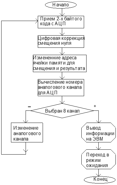 Калибровка осуществляется автоматически и управляется микроконтроллером. Запуск коррекции осуществляется по нажатию кнопки оператора. При этом на мониторе компьютера должен показываться ноль. Следует отметить, что коррекцию производит непосредственно микроконтроллер по каждому каналу, причем компьютер в данной операции не участвует.