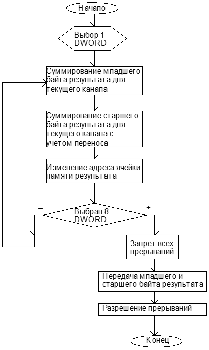 В то же время происходит цифро-аналоговое преобразование выбранного канала. Причем используется один АЦП, поэтому сигналы мультиплексируются. Мультиплексор управляется микроконтроллером. Полученный код веса записывается в микроконтроллер. Затем, МК меняет адрес канала и процесс преобразования повторяется для нового канала. После того, как будут опрошены все каналы и будут записаны полученные коды, характеризующие частичный вес, происходит суммирование частичного веса. Эта сумма характеризует полный вес вагона.