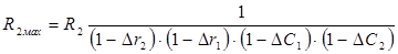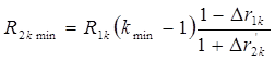 рассчитаем диапазон коэффициента усиления к , определяемый 10% разбросом величин пассивных элементов звеньев. Получим: