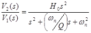 В этом выражении Н0 — коэффициент передачи на бесконечно большой частоте, ωn – собственная частота, Q–добротность.