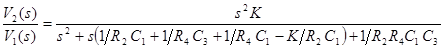 Для схемы фильтра с многопетлевой обратной связью передаточная функция по напряжению имеет вид (учитываем что К стремиться к ∞):