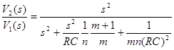 Реализацию ФВЧ второго порядка можно получить подстановкой К=1. Полагая m=С3 /С1 , и n=R4 /R2 и подставляя С1 =С и R2 =R, получаем вместо (1.2)